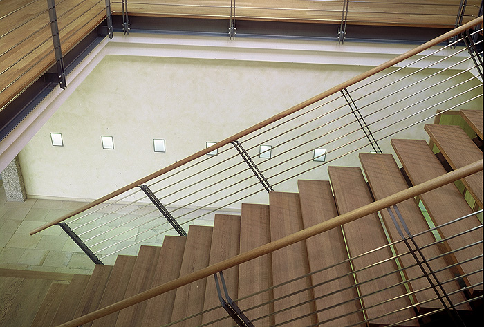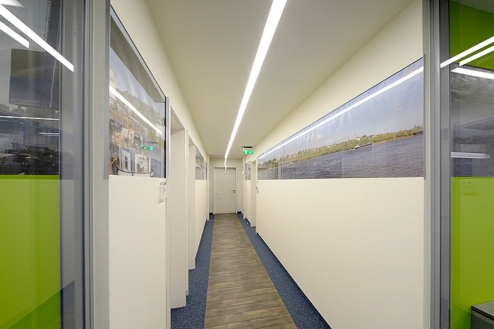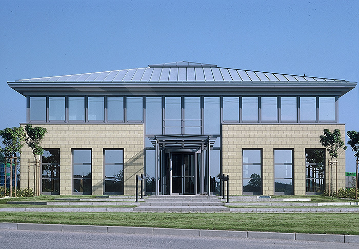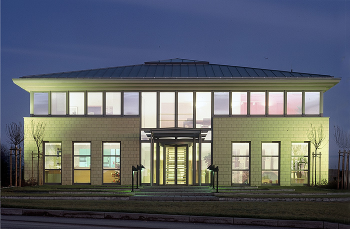 Projekt 2, das Verwaltungsgebäude der Firma Rünz & Hoffend in Urmitz, stellt ein von uns im Vorentwurf komplett geplantes Bürogebäude dar, die Ausführungsplanung der Architektur erfolgte durch ein Andernacher Architekturbüro in Absprachen mit uns, die Ausführungsplanung für die Einrichtungen wieder in unserem Planungsbüro.