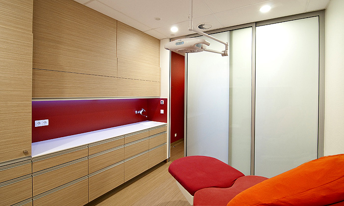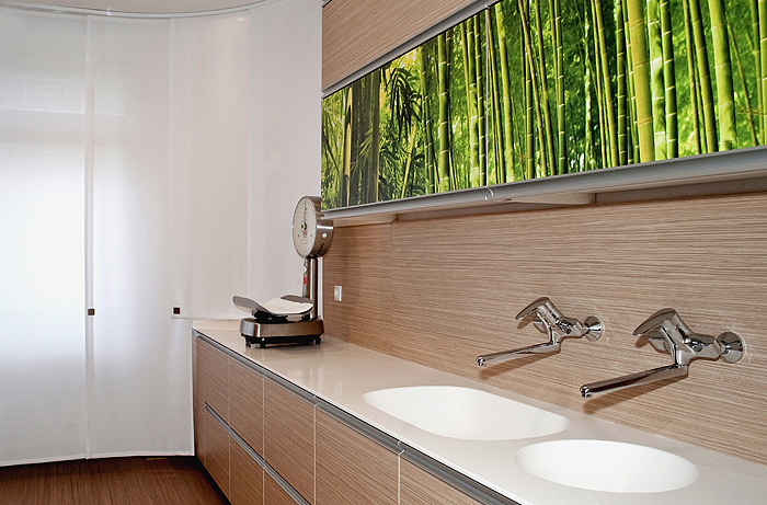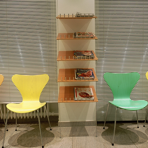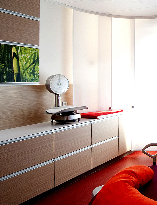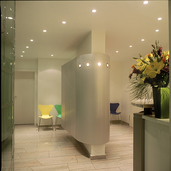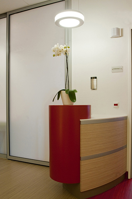 Unser Beispiel 1 zeigt eine HNO – Praxis, bei der durch Entfernen von Zwischenwänden, einer großzügigen Linienführung und einer sehr speziellen Materialwahl, aus dunklen, verwinkelten Räumlichkeiten eine lichte, großzügige und wohltuende Atmosphäre erreicht wurde. Die zeitlose Einrichtung hat auch nach 12 Jahren Bestand noch einen innovativen Ausdruck.