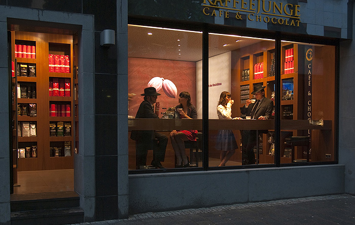 Als Referenzprojekte zeigen wir 1.den Anbau an die Restauration der Andernacher Mittelrheinhalle durch einen Wintergarten, der die ehemalige große Terrasse am Rheinufer überbaut. Viel Glas , eine Menge Licht, ein schöner Ausblick, eine gute Akustik, schlichte Möblierung und ein großer Kamin bringen, zusammen mit etwas Farbe und Kunst genug Stimmung für eine erfolgreiche Annahme der neuen Räumlichkeiten von Beginn an. Projekt 2 ist der 2010 in Koblenz eröffnete `Kaffeejunge´, ein Kaffee- und Schokoladenfach-Geschäft der besonderen Art.